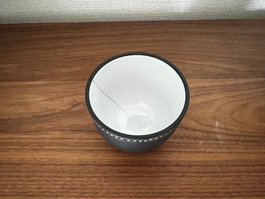 元々「ヒビ入ってるな〜」と思っていたカップがとうとう水漏れを起こしたようです。